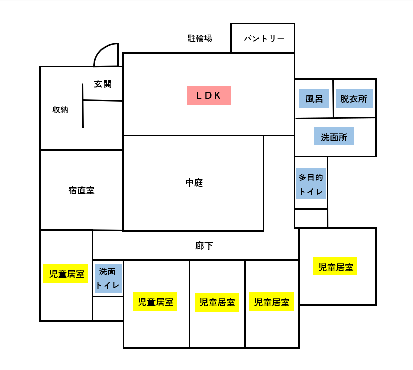 分園型小規模グループケア「ひだまり」 令和 4年4月に 分園型小規模グループケア「ひだまり」を開設(定員6名) 本園の運動場と駐車場を挟んだ東側に建設。少し距離を置くことで、本園の賑やかさとは打って変わり 穏やかで、より家庭的な雰囲気の中で過ごしています。